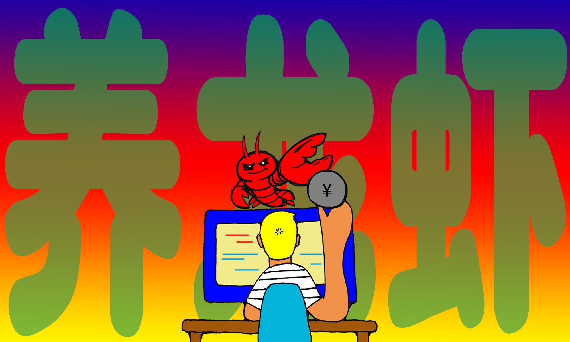And this is exactly what so many people are doing in China right now — “raising their lobsters” (养龙虾). As well as this three-character phrase, there are also other common versions, like the shorter “lobster raising” (养虾), and also “lobster farmer” (养虾人).