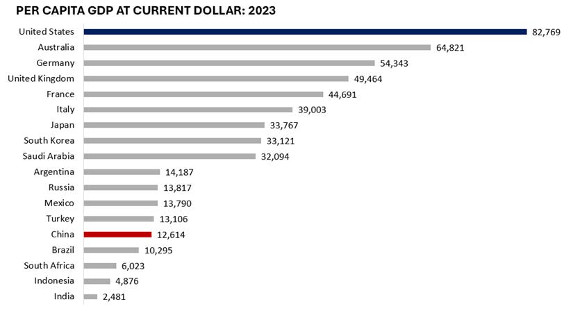As a result, despite persistent deficits in goods trade, on a per capita GDP basis, the US is by far the richest major country in the world. Is this a “national emergency”?